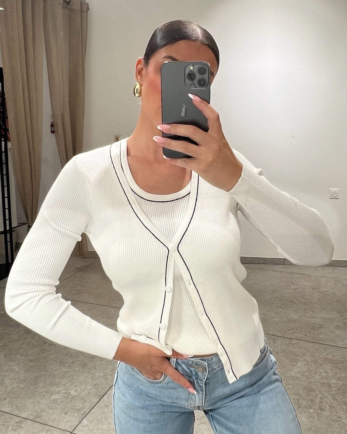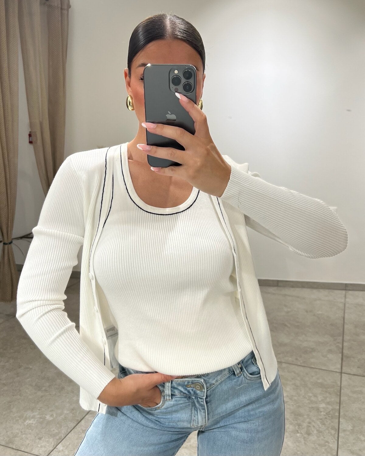Ensemble deux pièces débardeur gilet pour femme, en viscose et polyamide, idéal pour l'automne/hiver.