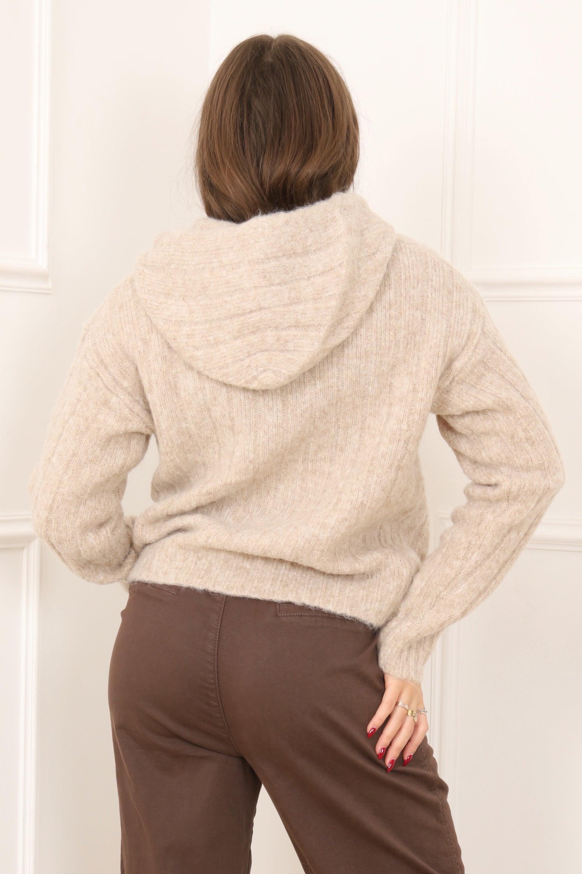 Magnifique pull à capuche tout doux et tout chaud (13% de laine)
