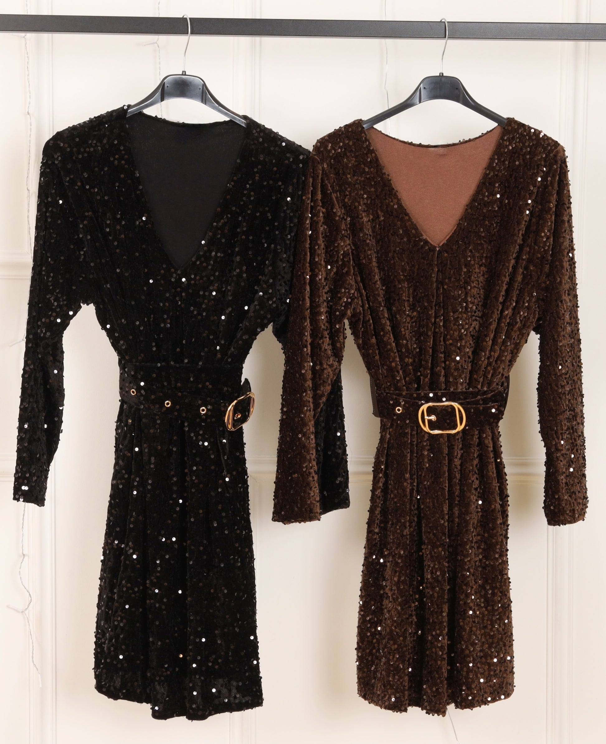 Robe à sequins pour vos fêtes de fin d'année vendue avec sa ceinture