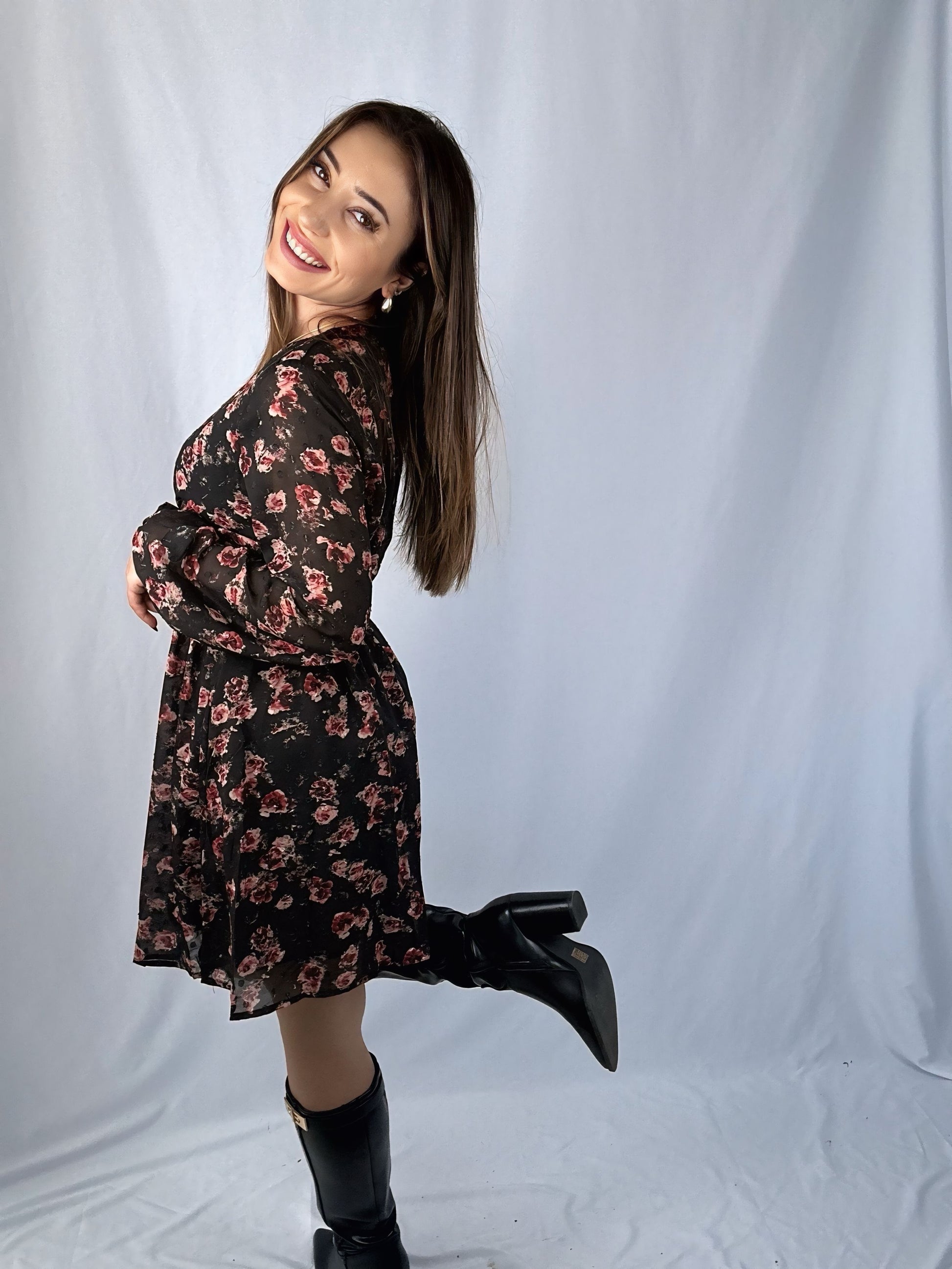 Robe en voile doublée entièrement à motifs fleurs